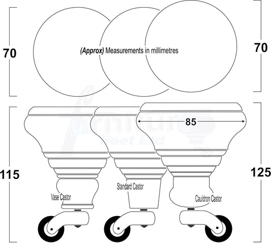 2 Mahogany Wood Furniture Sofa Feet With Castor 125mm & 2 Curved Legs Chair Settee 100mm High M8