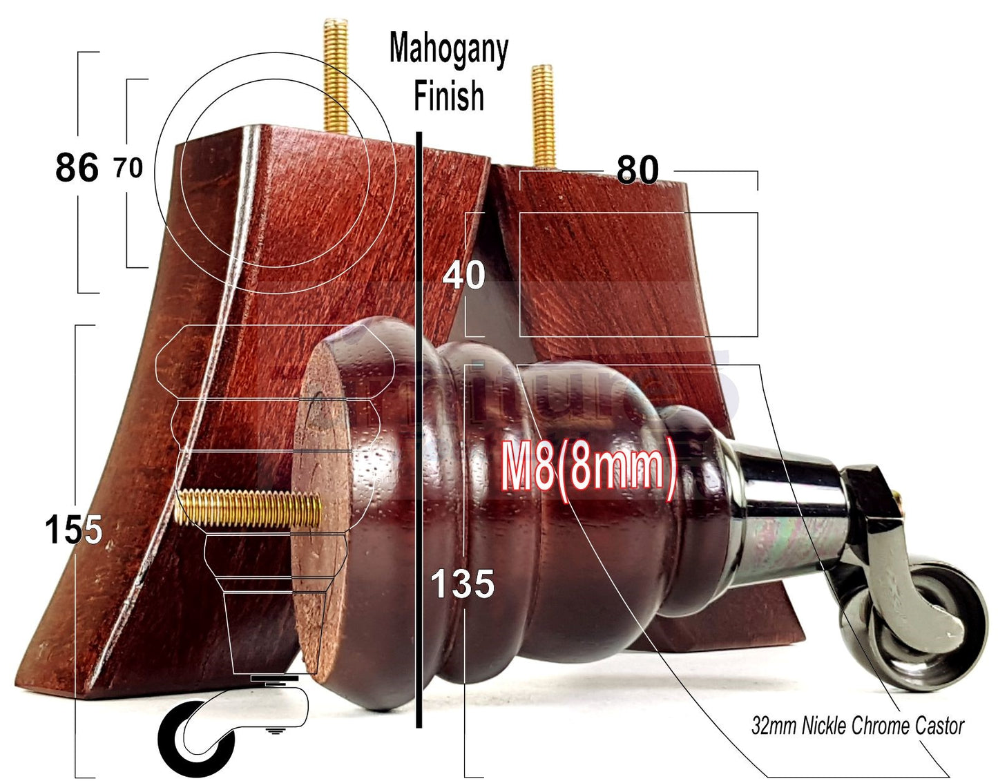 These legs are great for any furniture including sofas, chairs, settee’s, beds, footstools, cabinets, tables, bookcases, draws etc