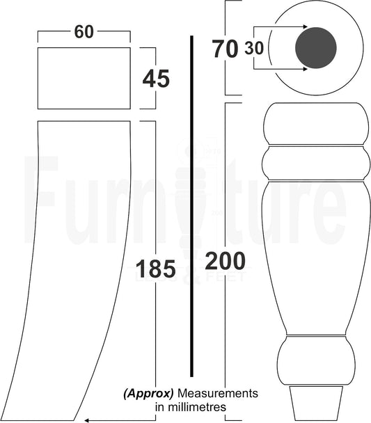 2 Turned Furniture Feet Replacement Sofa Legs 200mm & 2 Curved Back Legs 185mm for Chairs Sofa Settee Cabinets M8