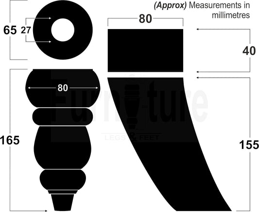 2 Traditional Turned Furniture Feet Replacement Sofa Legs 200mm & 2 Curved Back Legs 185mm for Chairs Stools Sofa Beds Settee Cabinets M8