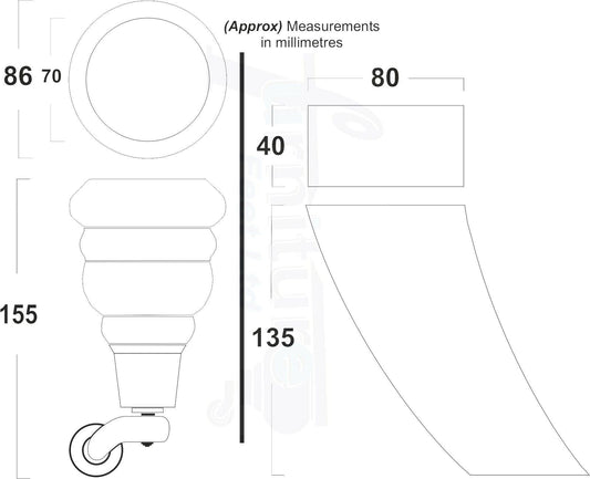 2 Replacement Wood Furniture Legs With Castors & 2 Curved Feet 155mm Chair Sofa Stool M8